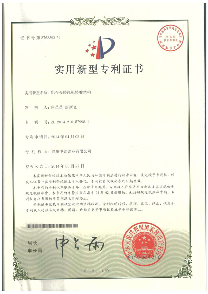 實用新型專利證書