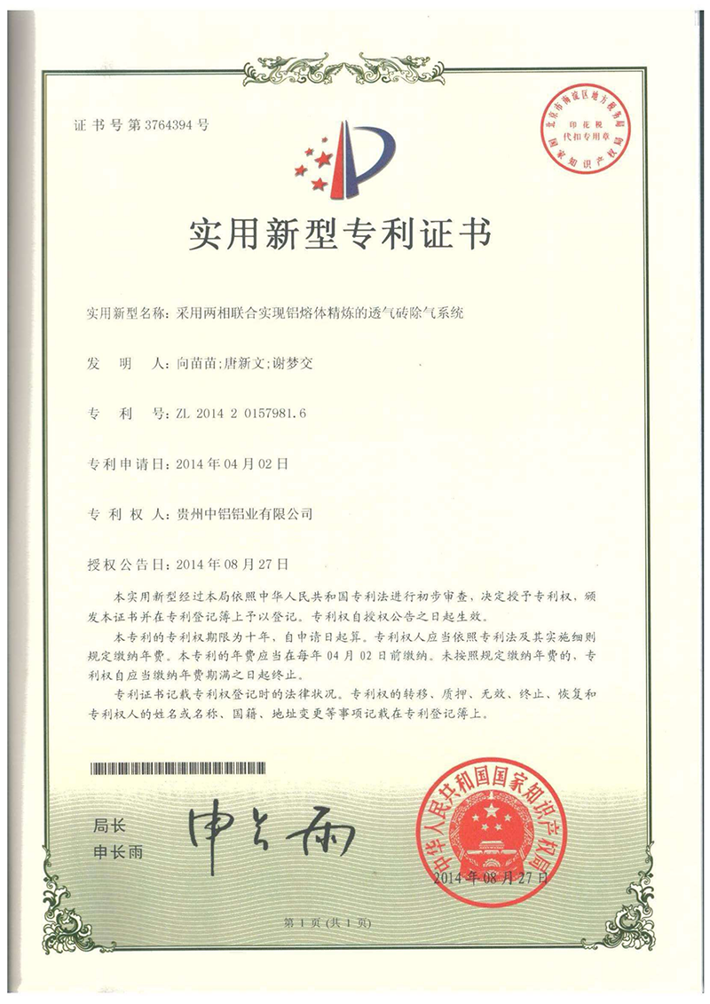 實用新型專利證書