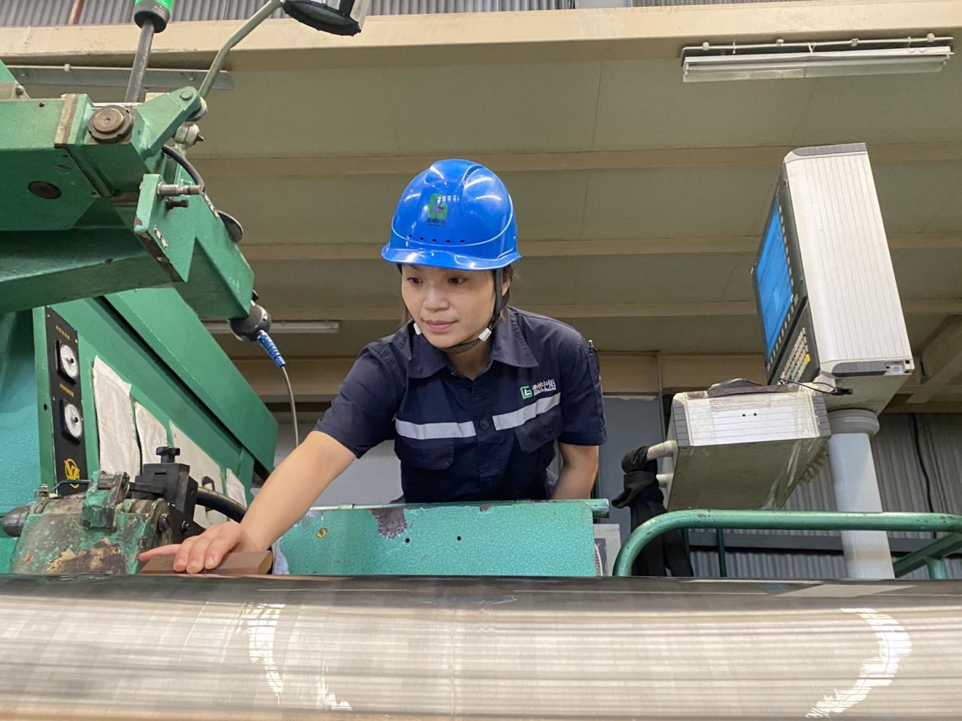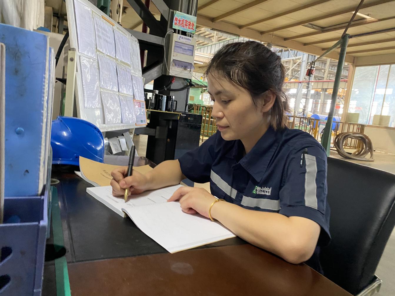 2012年,公司在安裝冷軋機、分切機等設備,安裝設備就必須要用到行車來進行操作,由于當時很多工人都沒有行車操作證,所以不能操作行車,只有她有行車證,于是她主動找到領導承擔了行車操作的大任,她身兼數職,全身心參與并負責整個行車的安裝保障以及對其他工人的操作技能教學,在她的不懈努力下,公司設備順利安裝完成。同時,在她的指導和幫助下,公司也培養出了第一批行車操作工。